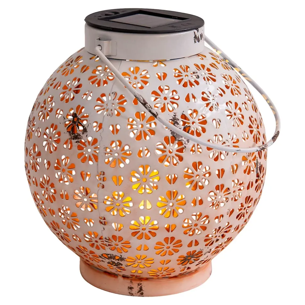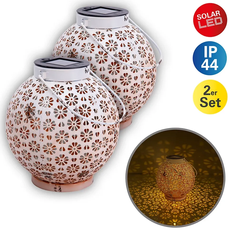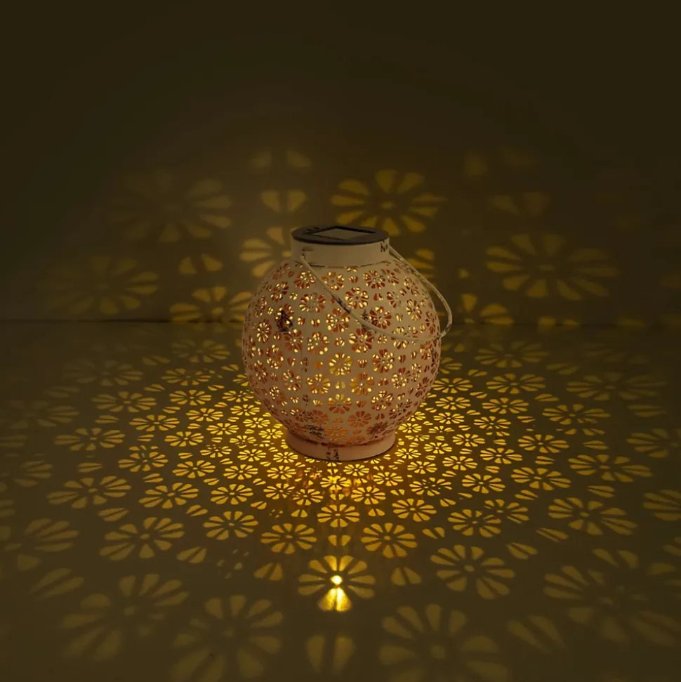 Avec la lampe solaire tendance de la collection MOTIFS FLEURS, vous apportez de la luminosité à votre espace extérieur. Cette lampe solaire est le choix idéal pour plonger votre jardin ou votre terrasse dans une lumière accueillante. Cette lampe impressionne par l’alliance réussie du style oriental et de matériaux de qualité. Sa forme sphérique claire et son design confortable s’harmonisent parfaitement, ce qui en fait un véritable point de mire. Grâce à la finition robuste du métal, la lampe solaire devient un véritable objet polyvalent, la couleur blanche souligne son design moderne. Les dimensions de cet article sont de 18 cm de largeur, 18 cm de longueur et 19,5 cm de hauteur. Cette lampe solaire est équipée de 2 LED de haute qualité et offre ainsi un éclairage attrayant et efficace sur le plan énergétique. L’interrupteur à pression permet d’allumer et d’éteindre facilement la lampe. Grâce à la prise USB supplémentaire, vous pouvez facilement et confortablement recharger votre appareil via n’importe quel port USB. Comme la vraie lumière d’une bougie, cette lampe à effet de flamme crée une atmosphère chaleureuse et agréable. Grâce à un capteur de crépuscule intégré, la lampe s’allume automatiquement à la tombée de la nuit. Ce produit répond aux exigences de la classe 3 et du type de protection IP44, le luminaire est donc conçu pour une utilisation en extérieur. Les lampes d’extérieur à énergie solaire offrent une option d’éclairage durable et économique qui se distingue par sa facilité d’installation et sa polyvalence. Ils permettent un éclairage élégant des espaces extérieurs tout en contribuant considérablement à réduire la consommation d’énergie.