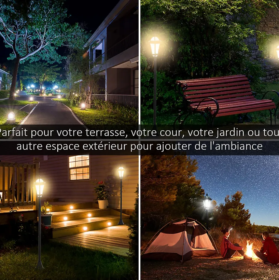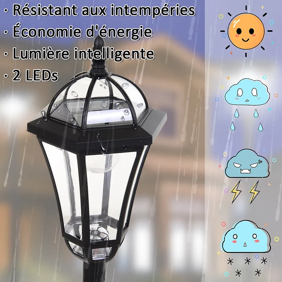 Ce superbe lot de 2 lampadaires LED noir à énergie solaire apportera une touche d’élégance et de romantisme à votre jardin. Dotés d’un système interne de gestion de l’éclairage via détecteur de luminosité, ils illumineront l’espace de votre choix : bordur