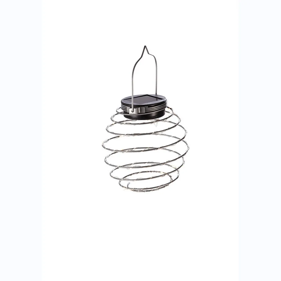 Lot de 2 suspensions spirale à énergie solaireMatière : métalNombre de Lumens : 3Durée maximum d’éclairage : 8 heuresInterrupteur on/offLED : 16 Micro-LEDs multicolore (3000K)Batteries rechargeables : 1 x 200mAh Ni-Mh AAADimensions produits : (voir le schéma technique parmi les images)H : 182 mm – Ø 120 mm