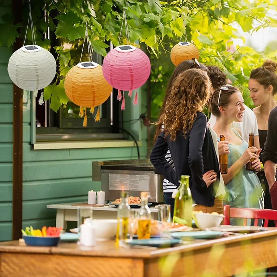 - Lot de 3 lampions solaires multicolores (rose, crème, orange)