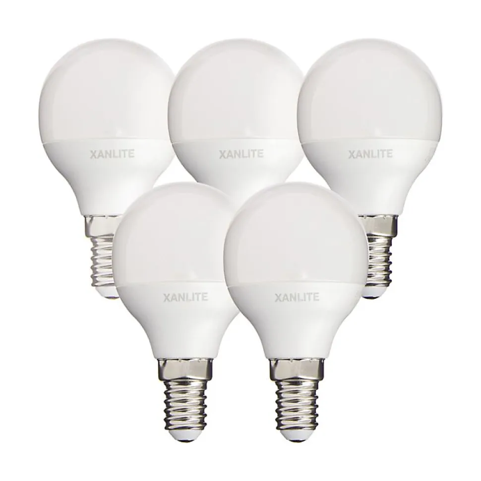 Xanlite – Lot de 5 ampoules SMD LED P45 Opaque, culot E14, 470 Lumens, conso. 5,3 W (eq. 40W), 4000K, Blanc neutre – PACK5EV470PCW