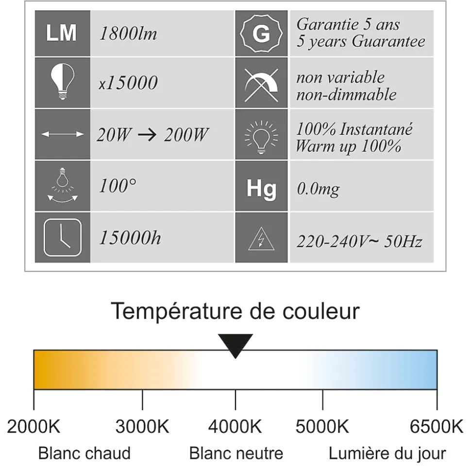 La marque Lutèce propose des produits hauts de gamme destinés à des installations professionnelles mais aussi aux particuliers qui souhaitent avoir des produits de qualités durables dans le temps.Ces projecteurs LED 20W représentent une solution performante et économique, en remplacement idéal des anciens modèles halogènes de 200W. Avec une puissance lumineuse de 1800 lumens, ils assurent un éclairage intense et homogène, parfaitement adapté aux espaces extérieurs. Leur conception tout en aluminium favorise une excellente dissipation thermique contrairement à la fonte d’aluminium, prolongeant ainsi la durée de vie des composants internes des projecteurs et garantissant un éclairage stable, sans risque de surchauffe ni baisse de performance. Une meilleure dissipation thermique préserve les surfaces sur lequelles les projecteurs sont accrochés (exemple : peinture sur vos murs, verni sur les poutres). Ces projecteurs sont équipés d’un transformateur intégré, facilitant ainsi une installation rapide et sans effort.