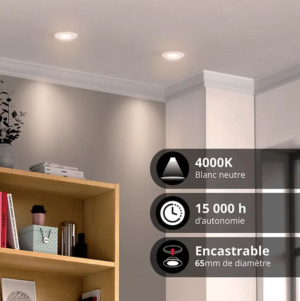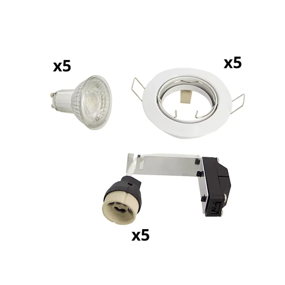 Xanlite – Lot de 5 Spots Encastrés Metal Blanc – Orientables – Ampoules LED GU10 incluses – cons. 4W (eq. 50W) – 345 lumens – Blanc neutre – PACK5SP50ABCW