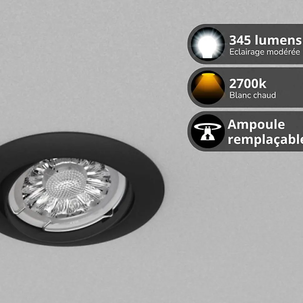 Xanlite – Lot de 5 spots noirs encastrables LED avec ampoules incluses, culot GU10, 345 Lumens, équivalence 50 W, 2700K, Blanc chaud – PACK5SP50AN