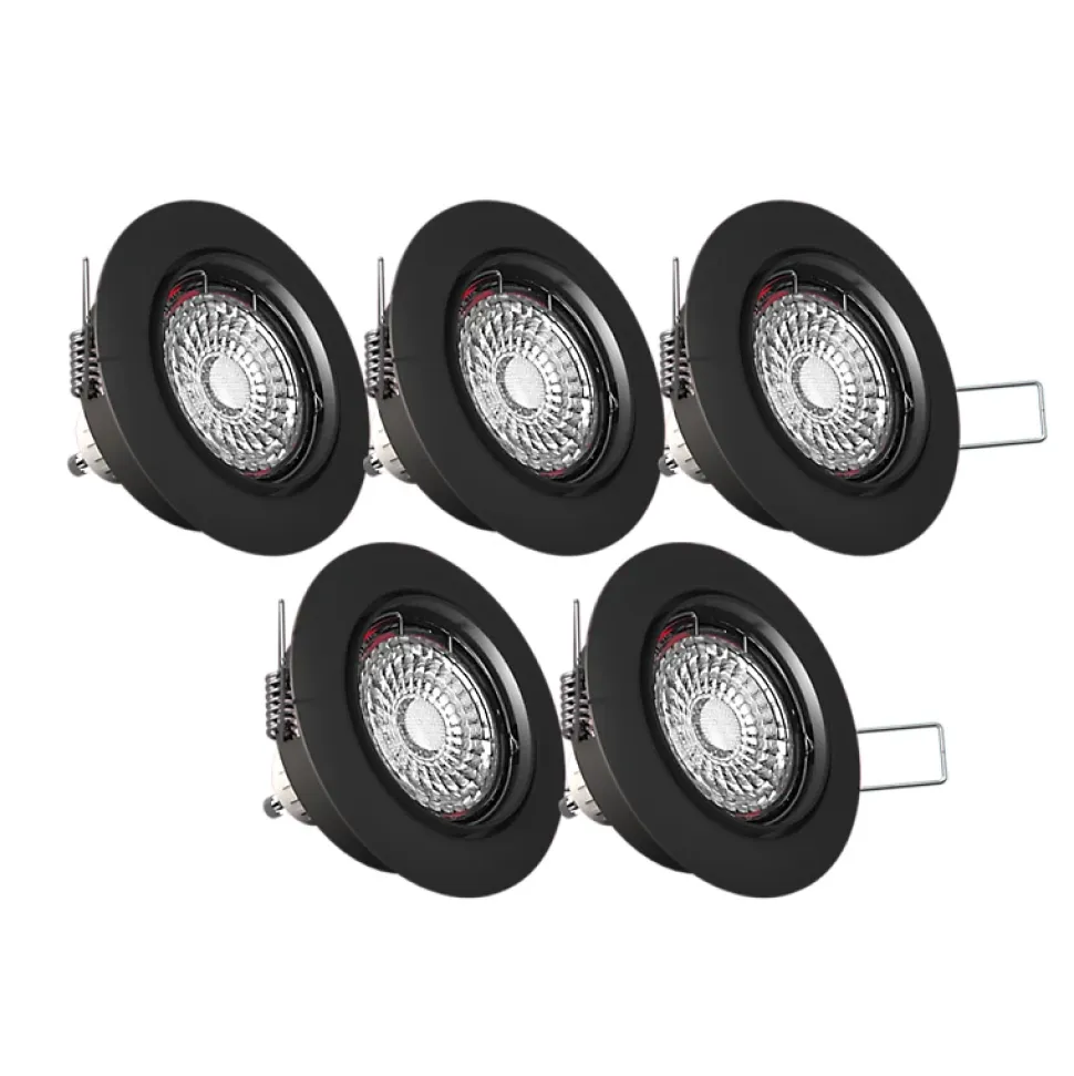 Xanlite – Lot de 5 spots noirs encastrables LED avec ampoules incluses, culot GU10, 345 Lumens, équivalence 50 W, 4000K, Blanc neutre – PACK5SP50ANCW