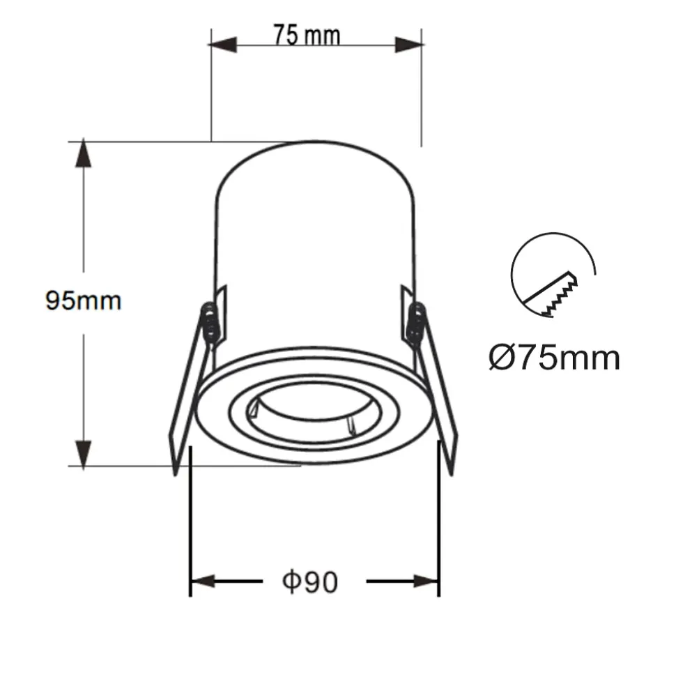 Ces supports de spot encastrables GU10 sont spécialement conçu pour les environnements humides, notamment les salles de bain. Avec son indice de protection IP65, ils peuvent être installés au-dessus d’une douche (hors volume 1), garantissant une résistance optimale à l’humidité.Conforme aux normes Bâtiment Basse Consommation (BBC) et RE2020Étanchéité à l’air et à l’eau : évite les pertes thermiques et protège votre installation électrique de l’humidité.Retardateur de flamme 90 minutes pour une sécurité renforcée en cas d’incendie.Connexion automatique sans tournevis, facilitant une installation rapide et efficace.Branchement sécurisé : support relié à la terre pour une protection optimaleÉclairage économique et confortableCes spots sont fourni avec une ampoule LED GU10 de 6W (équivalent 35W) en blanc chaud 3000K, offrant un éclairage doux et agréable tout en réduisant votre consommation d’énergie. leurs angle de diffusion de 38° assurent une répartition homogène de la lumière.Caractéristiques techniquesNombre de spot : 5 piècesType : Spot encastrable étancheAmpoule incluse : GU10 LED 6W – 450lm – 3000K (blanc chaud)Ancienne norme 2012 : A+Nouvelle norme 2021 : FNorme BBC (RE2020) : Oui (étanchéité à l’air et à l’eau)Indice de protection : IP65 (résistant à l’eau et à la poussière)Puissance équivalente : 35W halogèneAngle de diffusion : 38°Connexion : Automatique, sans tournevisRetardateur de flamme : 90 min (BS476)Tension : 220-240VDimensions : Ø90 x 95 mm, perçage Ø75 mmCouleur du cadre : BlancDurée de vie : 15 000 heuresGarantie : 2 ansUne solution d’éclairage fiable et durableCe spot encastrable est la solution idéale pour un éclairage sécurisé, économique et esthétique dans votre salle de bain et autres pièces humides.