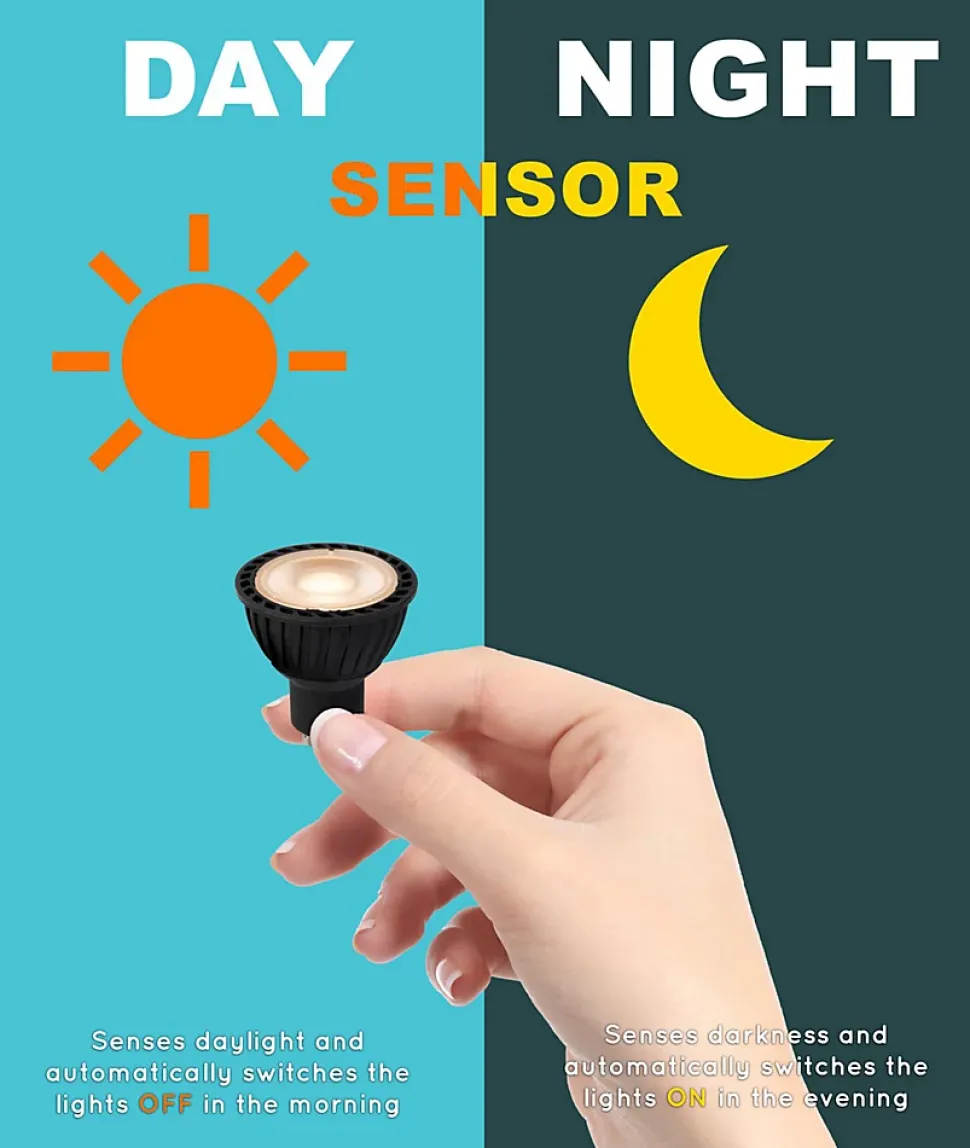 - Type d’ampoule: GU10 / Led – Équipé d’un capteur jour/nuit
