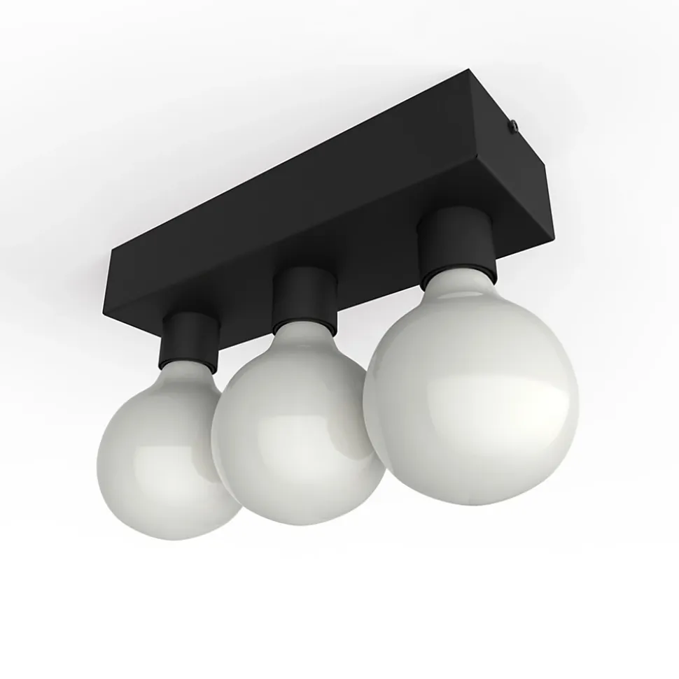 LUMICOM - BOSTON L Plafonnier, 3XE27, max 42W, métal, noir mat, 10X30cm