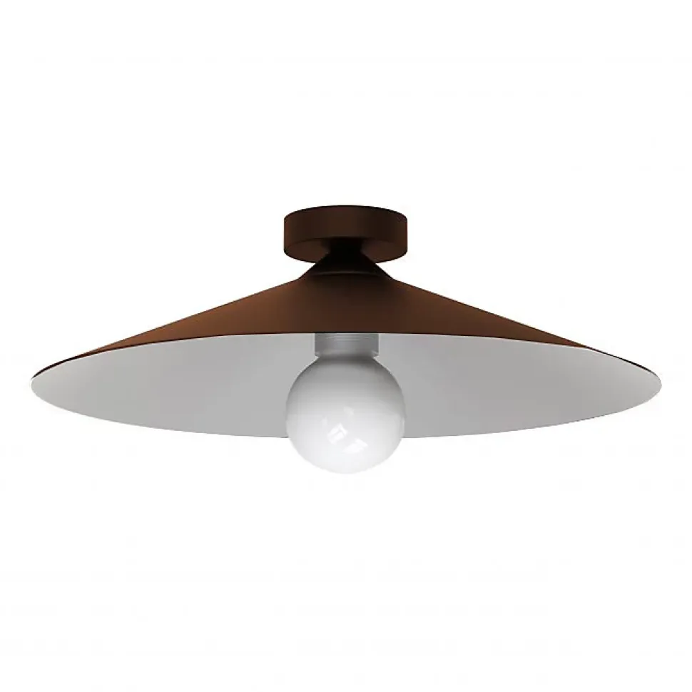 Le plafonnier CHAPEAU est un luminaire adapté aux intérieurs, équipé d’une douille pour ampoules E27. Chapeau, au design moderne et particulier, est composé d’un pavillon et d’un diffuseur en métal. Peint à la poudre époxy, Chapeau est disponible en deux tailles : 25 et 40 centimètres de diamètre. Le produit, disponible en plusieurs versions monochromes et en versions feuille d’or, d’argent et de cuivre, peut être personnalisé en fonction des besoins individuels de nos clients grâce à la production « just in time » de notre entreprise. 80% des composants de Chapeau sont remplaçables en cas de dommage, conformément à la norme sur l’écodesign entrée en vigueur depuis septembre 2021. Le plafonnier Chapeau est entièrement fabriqué dans nos usines avec des produits et des éléments 100% Made in Italy.
