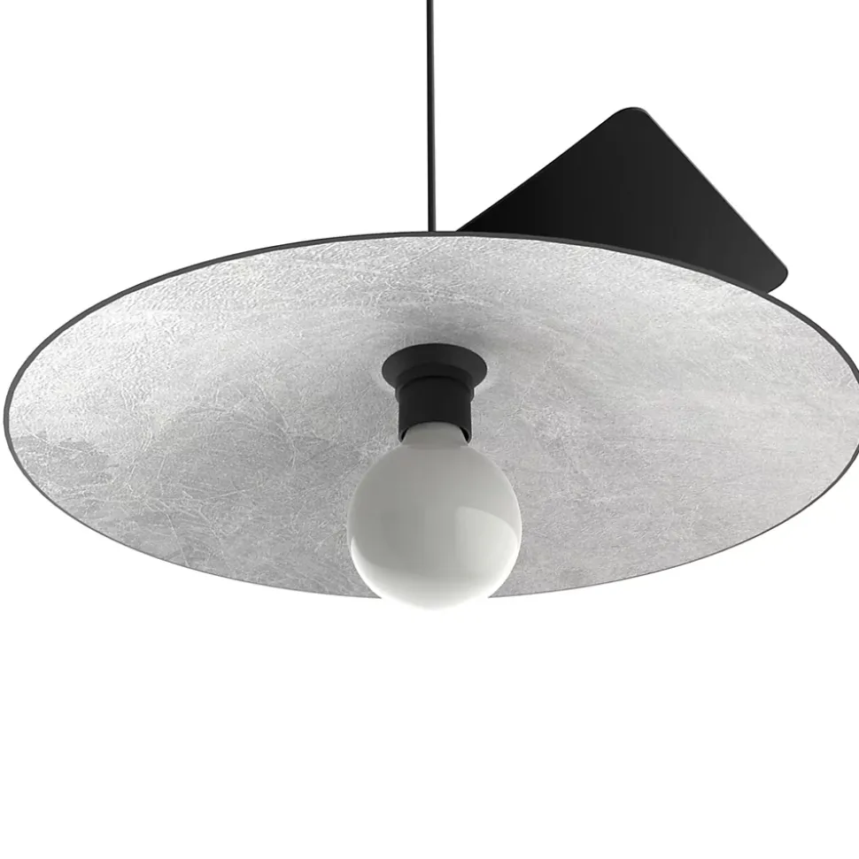 Miller est une suspension au look moderne et particulier. La plaque incurvée soutient le diffuseur placé en dessous, donnant un effet de forme particulier qui caractérise le produit par rapport au reste. L’article est entièrement peint avec de la poudre époxy et est équipé d’une douille E27 et d’un câble d’alimentation en PVC transparent. Intérieur du diffuseur recouvert manuellement d’une feuille de métal.
