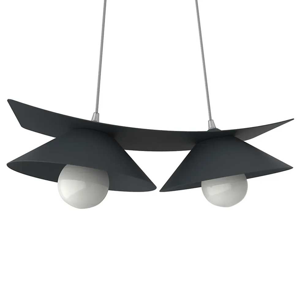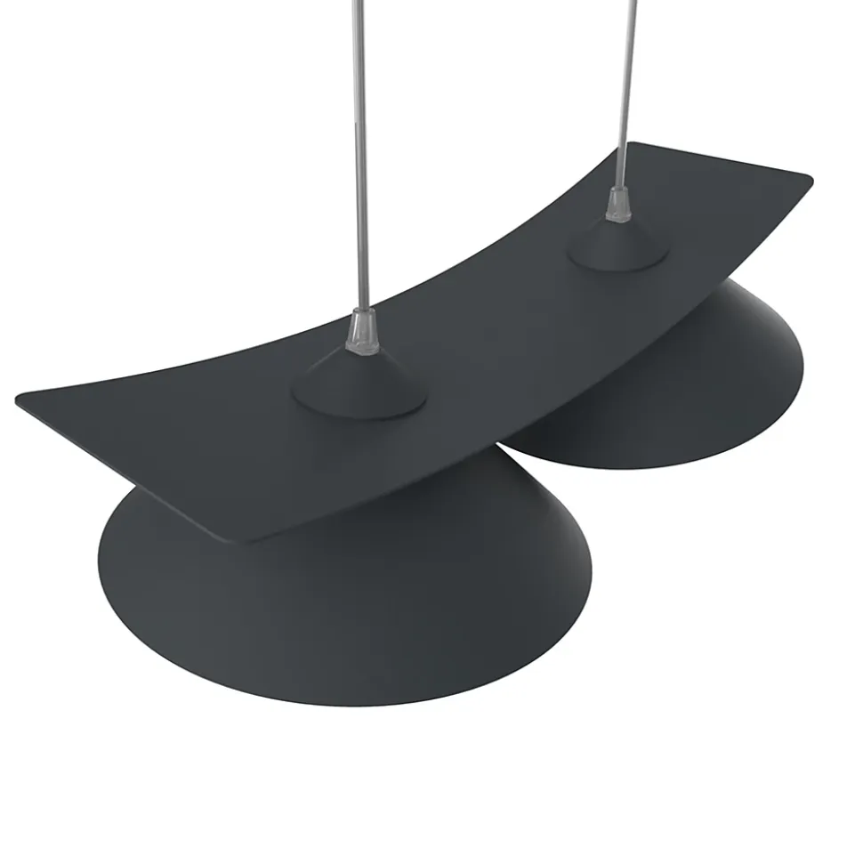 Miller est une suspension au look moderne et particulier. La plaque incurvée soutient les diffuseurs situés en dessous, donnant un effet de forme particulier qui caractérise le produit par rapport au reste. Le produit est entièrement peint avec de la poudre époxy et est équipé de douilles E27 et de câbles d’alimentation en PVC transparent.