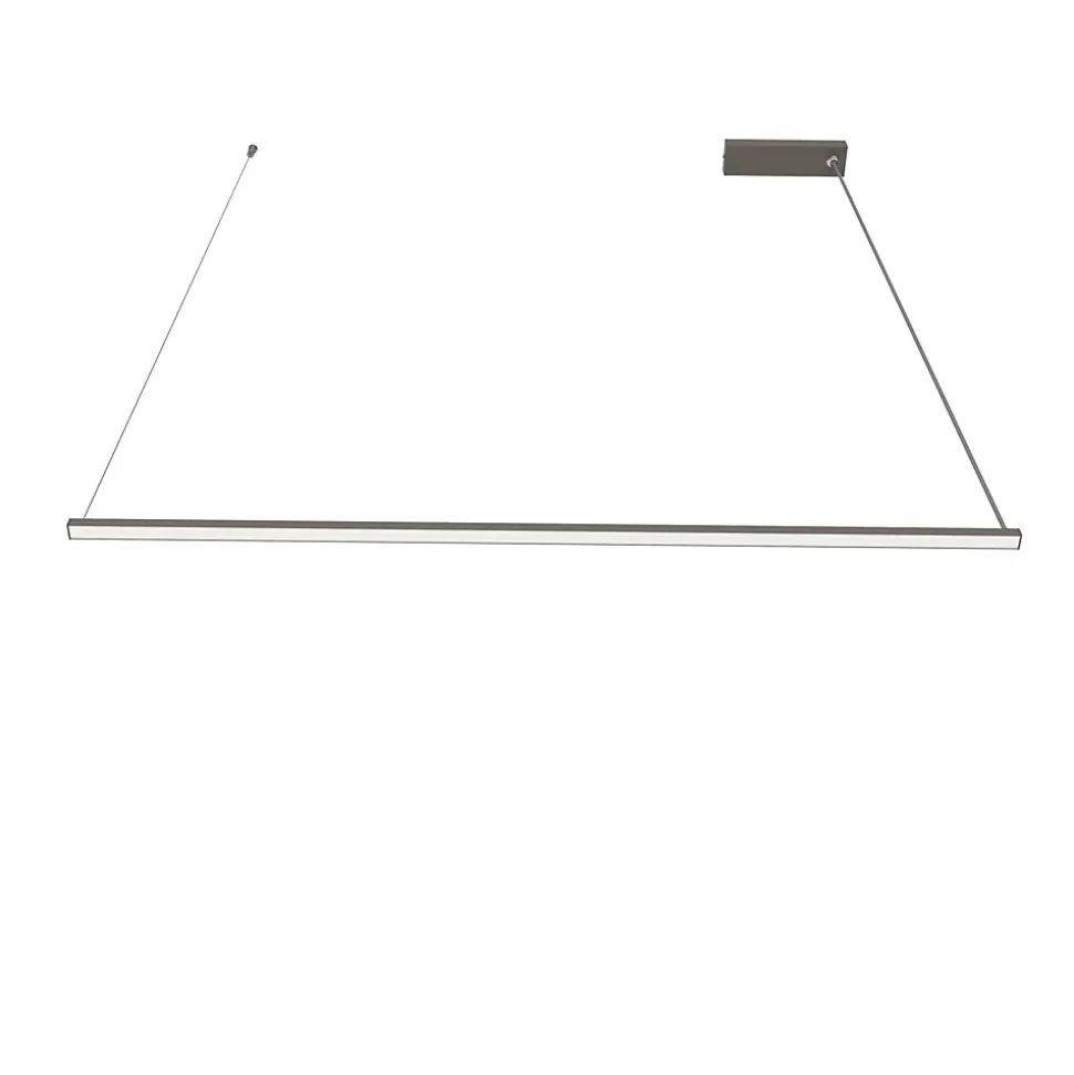 La suspension Splint est un produit adapté aux environnements de travail intérieurs. La lampe se compose d’une extrusion d’aluminium à l’intérieur duquel est logé un Strip LED de notre production. La diffusion de la lumière est assurée par le diffuseur en PMMA satiné logé sur la face apparente du profile Les deux câbles de support (un en acier et l’autre en PVC) permettent un réglage facile de la hauteur de la lampe.