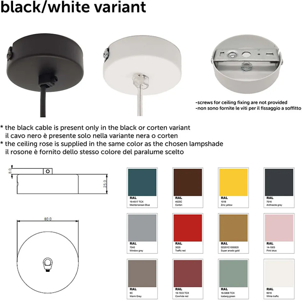 L’abat-jour cylindrique de la lampe à suspension Tuzzi est entièrement peint avec des couleurs de poudre époxy. Grâce à la forme de l’abat-jour, le produit se caractérise par une luminosité particulière lorsqu’il est allumé. La lampe à suspension Tuzzi, de forme sobre mais élégante, convainc pour son attention au détail, notamment par le fait qu’elle est fabriquée à la main en Italie par nos artisans.