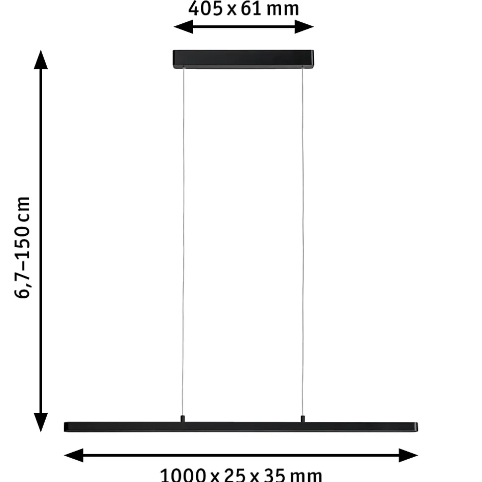 Rectiligne, moderne et technique : voici la suspension Lento, réglable en hauteur. Elle convainc par son flux lumineux élevé et diffuse la lumière aussi bien vers le haut que vers le bas. Modifiez la luminosité et la balance des blancs selon vos souhaits avec l’application Paulmann smik.