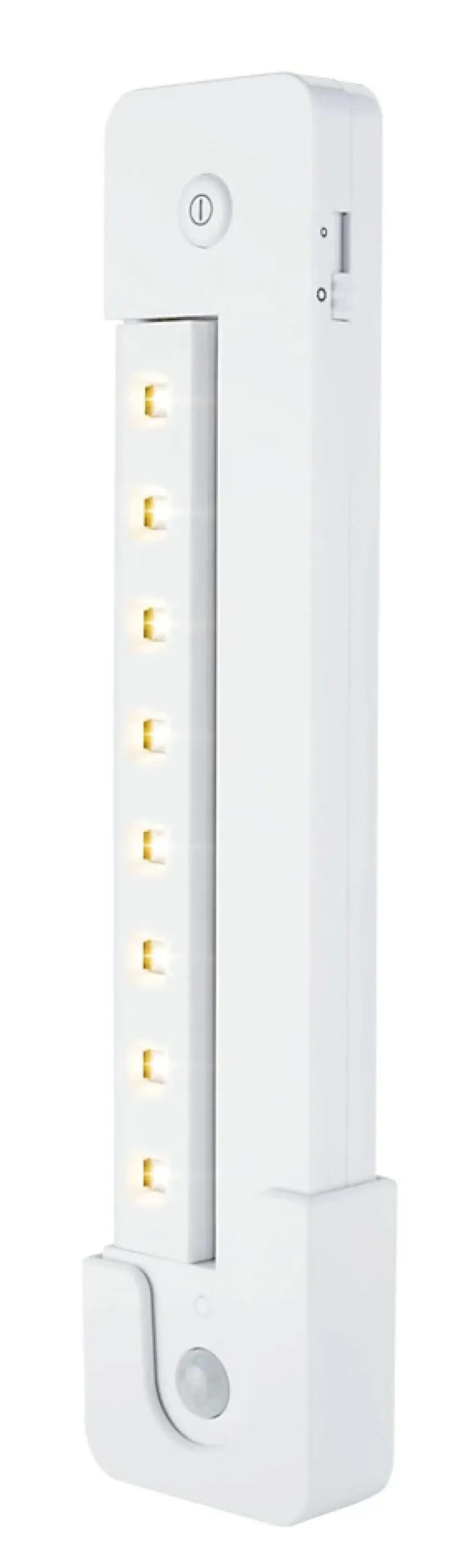 Avec détecteur de mouvement|Avec interrupteur Marche/Arrêt/variation d’intensité intégré|Fonctionnement sur piles pour une utilisation polyvalente|Fourni avec pads adhésifs : possibilité de montage sans percer|Température de couleur: 3000K – Blanc chaud|La technologie LED fait économiser jusqu’à 80 % d’énergie par rapport aux ampoules à incandescence classiques.
