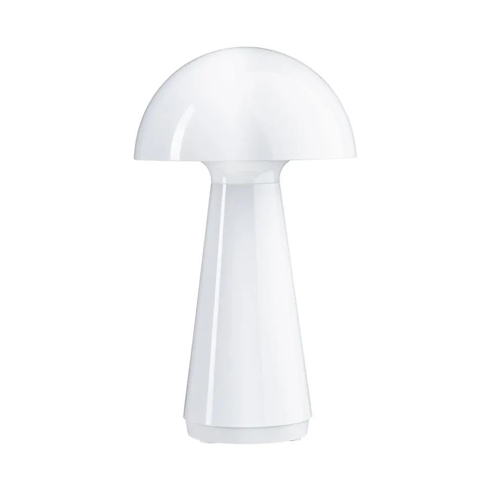 Intégration parfaite dans l’environnement grâce à la dimension compacte et le coloris intemporel du boîtier|Utilisable n’importe où même sans prise électrique grâce au fonctionnement sur batterie|Chargement simple de la batterie intégrée grâce à un câble USB|Température de couleur: 2700K – Blanc chaud|le type de protection: IP44 – convient pour locaux humides ou extérieur