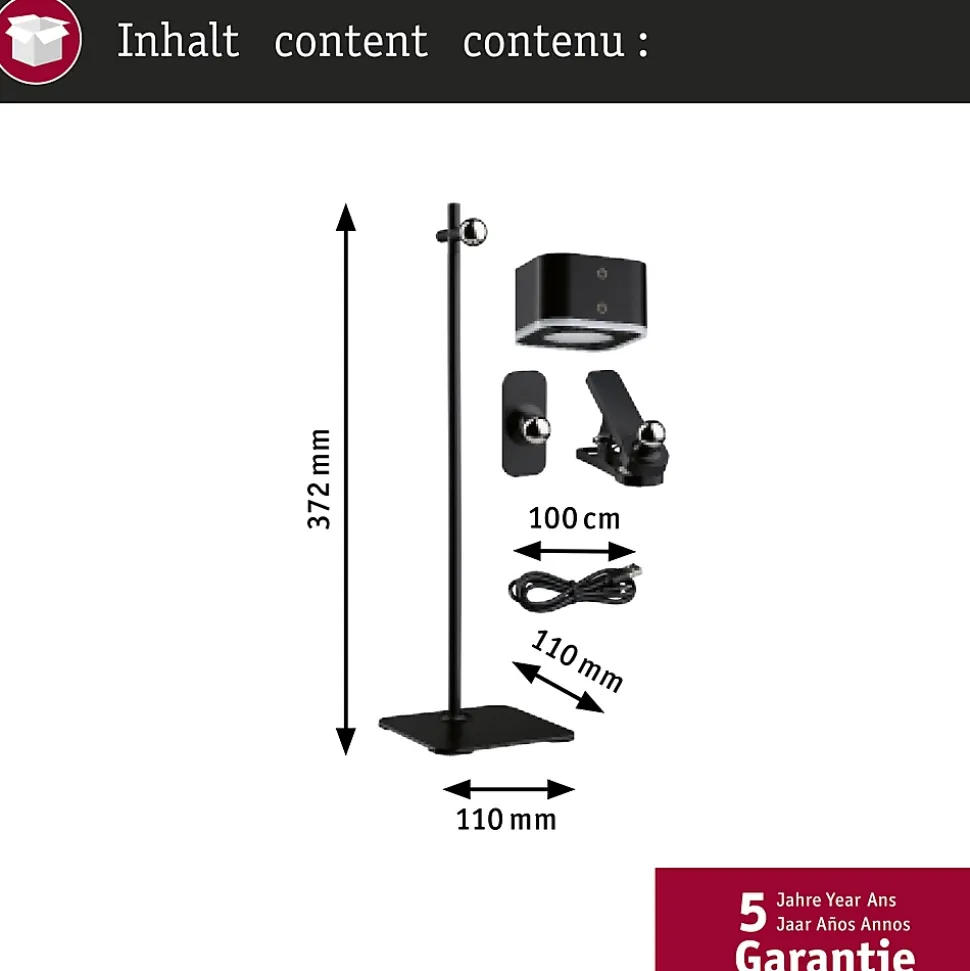 Utilisable comme lampe à poser, applique murale ou baladeuse|Grâce à la fonction mémoire, le luminaire se souvient du dernier réglage|L’articulation à rotule magnétique des supports permet de déplacer facilement la tête d’éclairage et de l’enlever.|Inclus : un pied de table stable, un support mural autocollant, un support de serrage flexible et un câble de chargement USB-C.|Brève durée de charge et longue durée d’éclairage|La commande de lumière blanche White Switch permet de régler individuellement la température de couleur et de l’atténuer progressivement.|Contrôle séparé et variation de l’éclairage vers le haut et vers le bas
