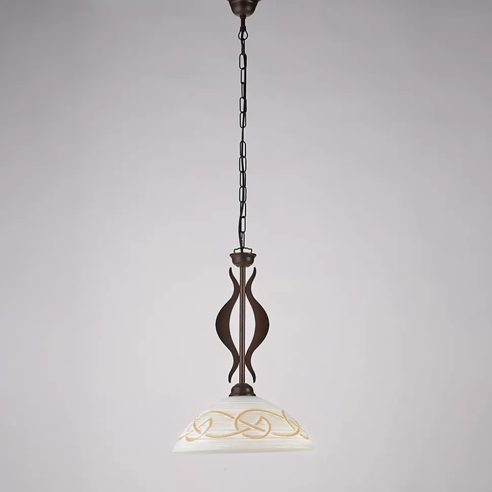 Lustre en fer laqué noir à décor effet rouille et diffuseur en verre diamètre 30 blanc et ambre 1 lumière – H.44 – MAX 104 – Ø30 Mesures du produit : H