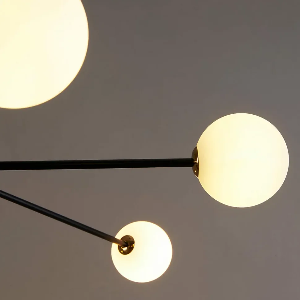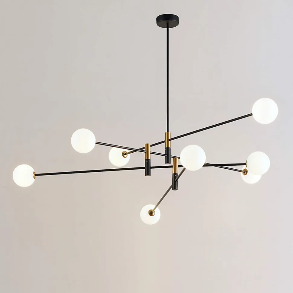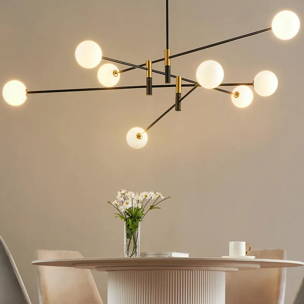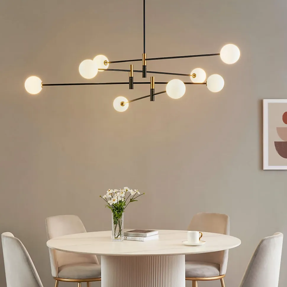Découvrez la grande suspension ultra moderne Rodia, conçue en métal avec une finition noire mat. Ses 8 abat-jours en verre blanc ajoutent une touche contemporaine. Chaque abat-jour cache une douille pour une ampoule de culot G9 (non incluse). Grâce à sa large superficie, cette suspension éclaire généreusement tout en apportant une élégance raffinée à la pièce. La hauteur de la suspension est réglable, offrant une flexibilité optimale.) Assemblage à faire par vos soins (
