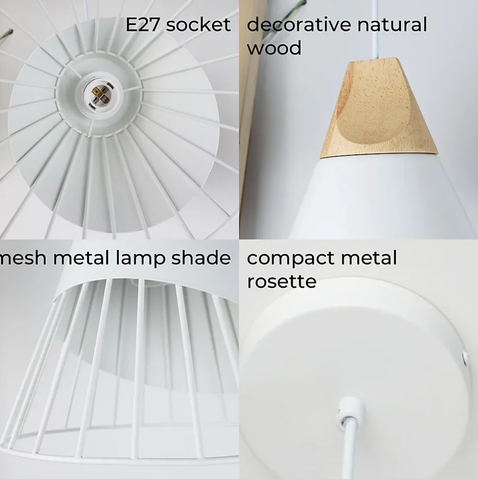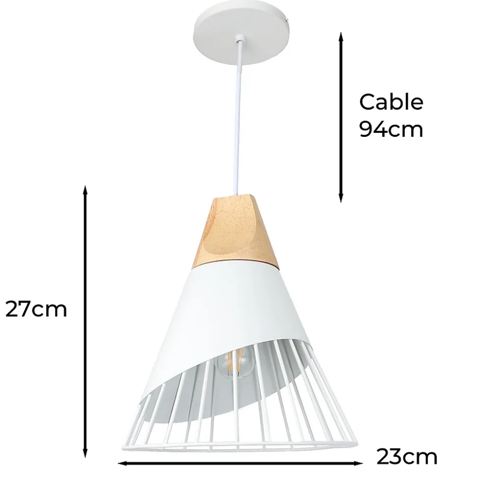 Suspension en Métal et Bois PLUMA – de style nordique, élégant et minimaliste.Style nordique, élégant et minimaliste.Fabriquée en aluminium, fer et bois naturel.Disponible en blanc ou noir mat pour s’adapter à toute décoration.Met en valeur l’ampoule avec un design original et sophistiqué.Installation facile et comprend tous les éléments nécessaires.Style: Nordique, élégant et minimaliste.Matériaux: Métal, fer et bois naturel.Disponibilité: Blanc ou noir mat.Ampoule: E27, max. 40W (non incluse).Usage intérieur: IP20.Dimensions: 270 x 230 mm.Câble: Ajustable jusqu’à 940 mm depuis la rosace.