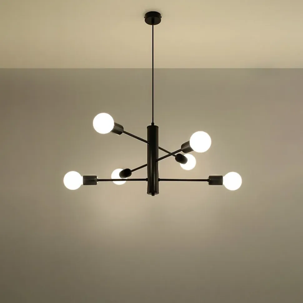 - Source lumineuse : E27, 6x max 15W LED, ~230V, 50Hz, IP20, classe de protection I.