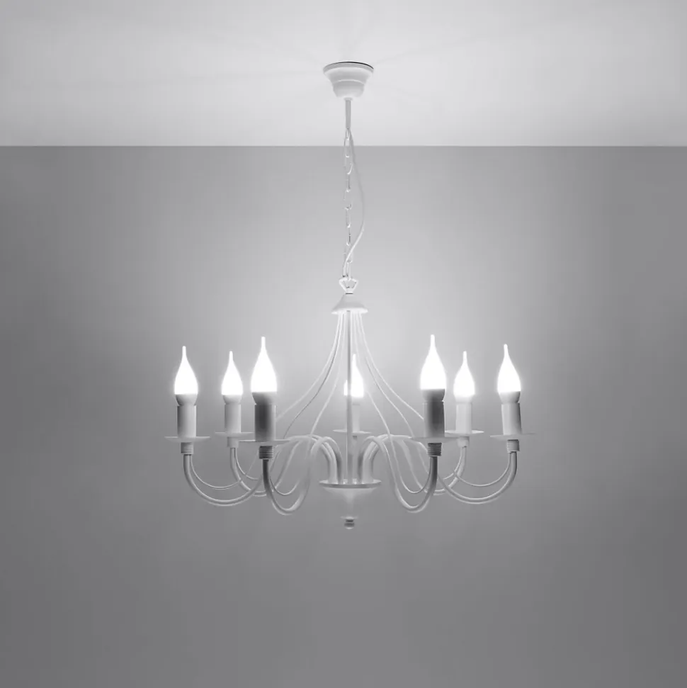 - Source lumineuse : E14, 7x max 10 W LED, ~230V, 50Hz, IP20, classe de protection I