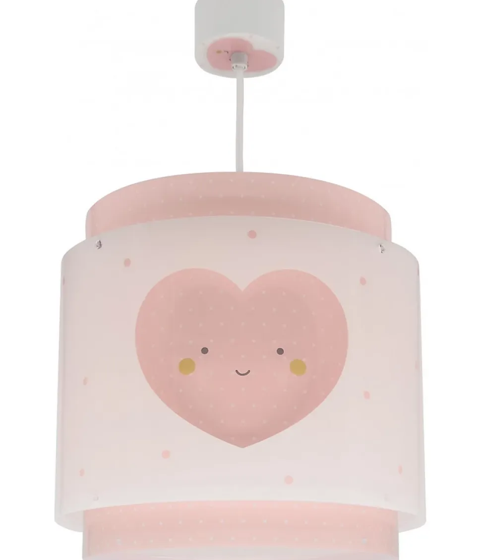 Lustre suspension pour enfant Baby Dreams avec trois petits coeurs avec un double écran transparent, comprend un diffuseur de lumière inférieur amovible.