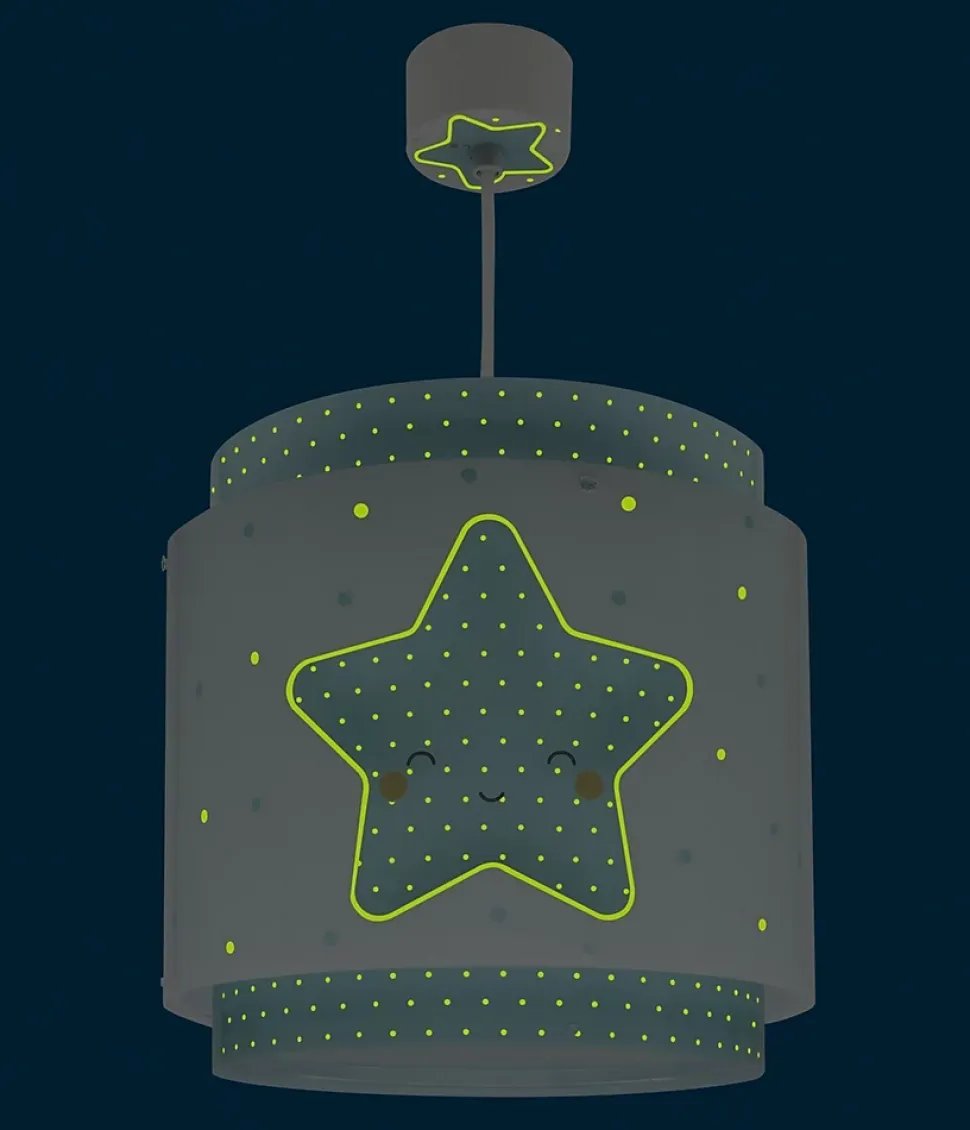 Lustre suspension pour enfant Baby Dreams avec trois petites étoiles avec un double écran transparent, comprend un diffuseur de lumière inférieur amovible.