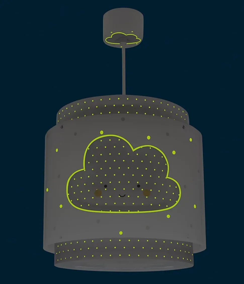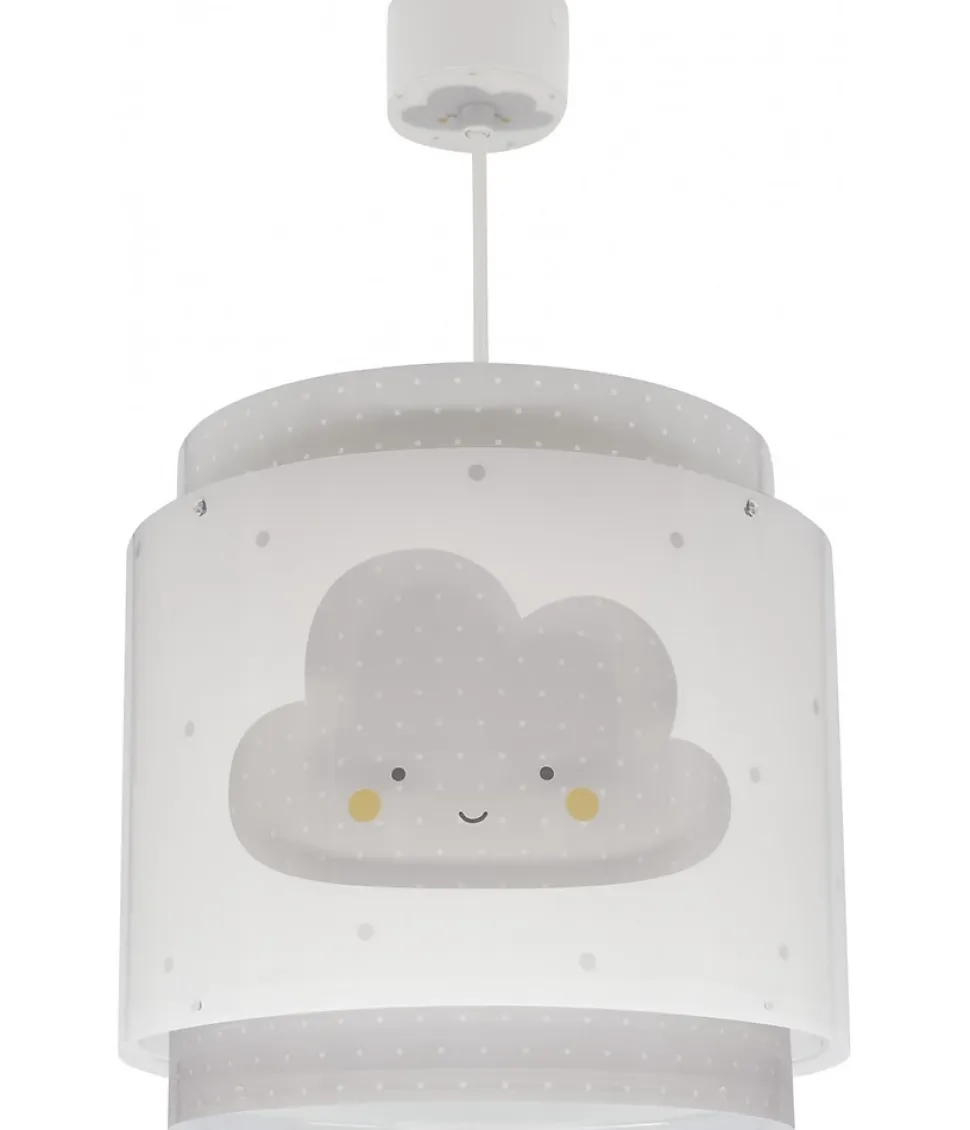Lustre suspension pour enfant Baby Dreams avec trois petits nuages de double écran transparent, comprend un diffuseur de lumière inférieur amovible.