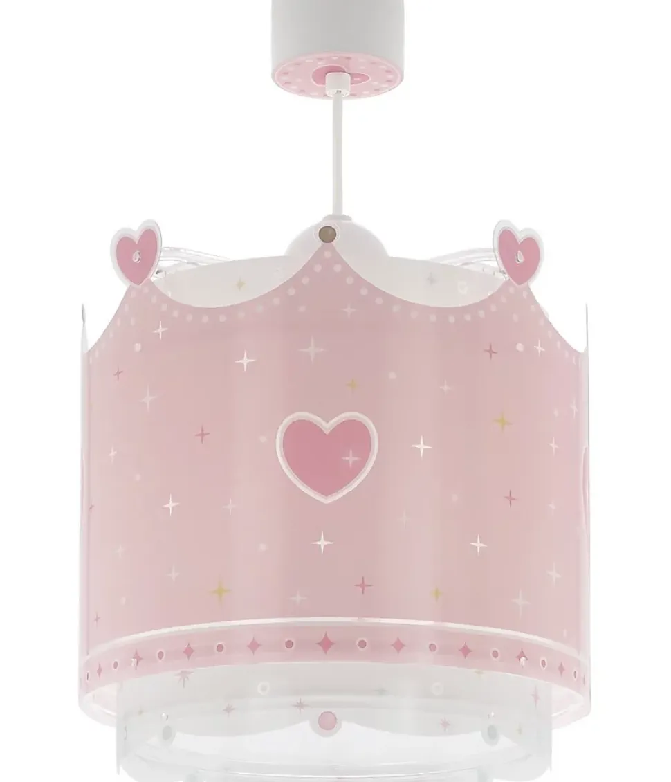 Acheter lustre pour chambre fille Little Queen Avec le lustre pour chambre fillee de la collection Little Queen vous mettrez toute la magie de son design dans la chambre d’enfant grâce à son double abat-jour en transparent polypropylène avec un coeur rose, un fond d’étoile et une forme de couronne. Il est réglable en hauteur pour s’adapter aux caractéristiques de la pièce et comprend un diffuseur de lumière inférieur amovible pour éviter l’éblouissementLustres pour filles avec fluorescenceLe lustre pour filles Little Queen brille dans l’occurrence !. Grâce à son effet de fluorescence, les contours des différentes figures brilleront dans le noir pendant quelques minutes lorsque la lumière est éteinte, lorsque la pièce est sombre. Les petits adorent !