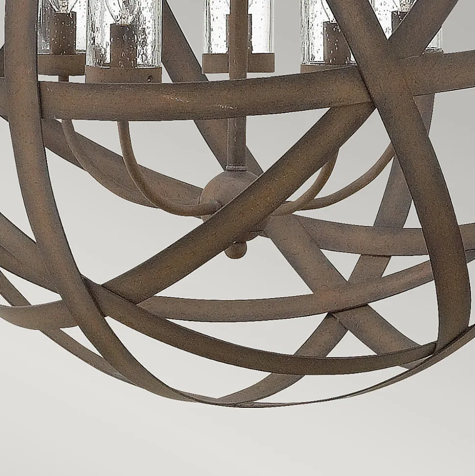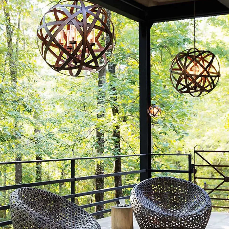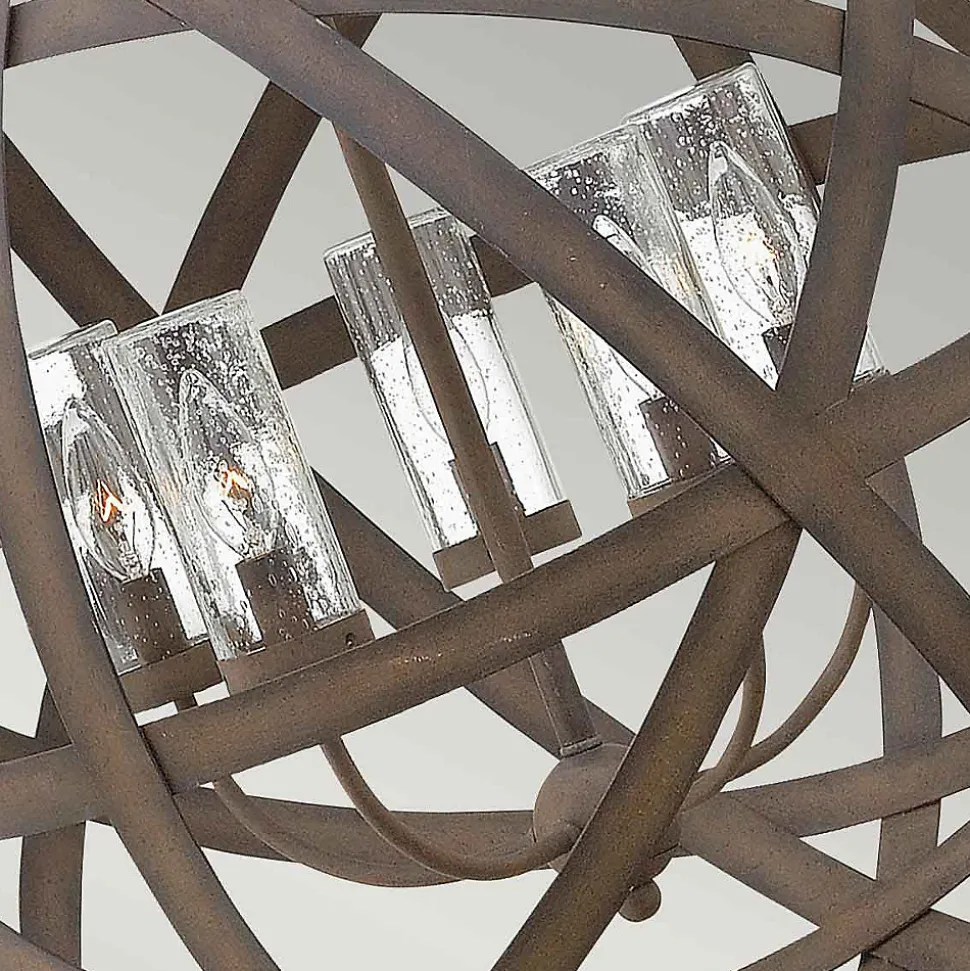 Le style haut de gamme se retrouve à l’extérieur avec la collection Carson. Ces produits extérieurs fabriqués à la main sont conformes à la norme IP44 et présentent d’audacieux rubans métalliques superposés dans une finition fer vintage. Associé à un verre sédimenté, ce design transitionnel illuminera toute oasis extérieure.