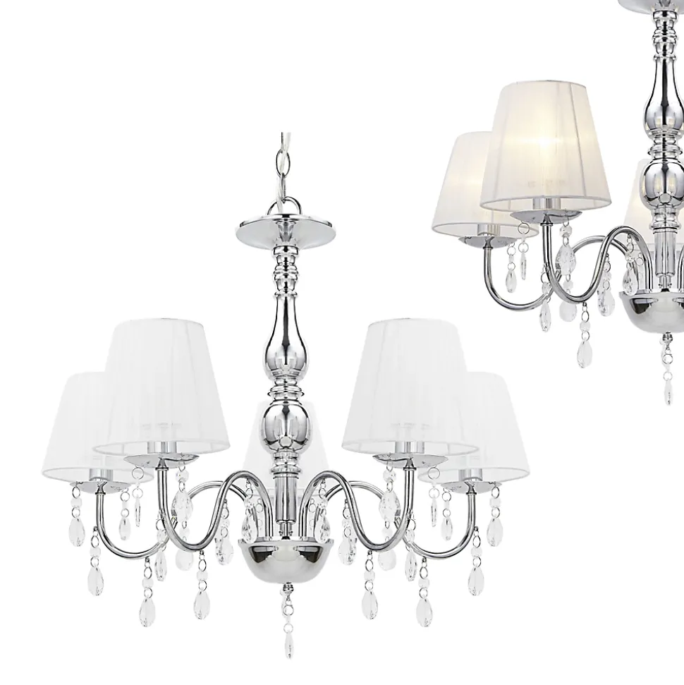 Lustre élégantNotre lustre élégant et décoratif est l’accessoire idéal de toutes lespièces de votre maison : ce plafonnier embellit votre salleà manger, votre salon, votre chambreà coucher, etc.Description :Matière : aluminium, plastiqueCouleur : chrome, blancDimensions : hauteur (sans chaîne) :45 cmdiamètre :54 cmDouille :5 x E14, max. 40W (sans ampoule)Caractáristiques :- éclairage efficace- design élégantsigneCE, conforme RoHsPronostic :Vous trouvez plusieurs ampoules dans notre magasin.Contenu de la livraison : 1 x lampeProduit de la marque[lux.pro]®.