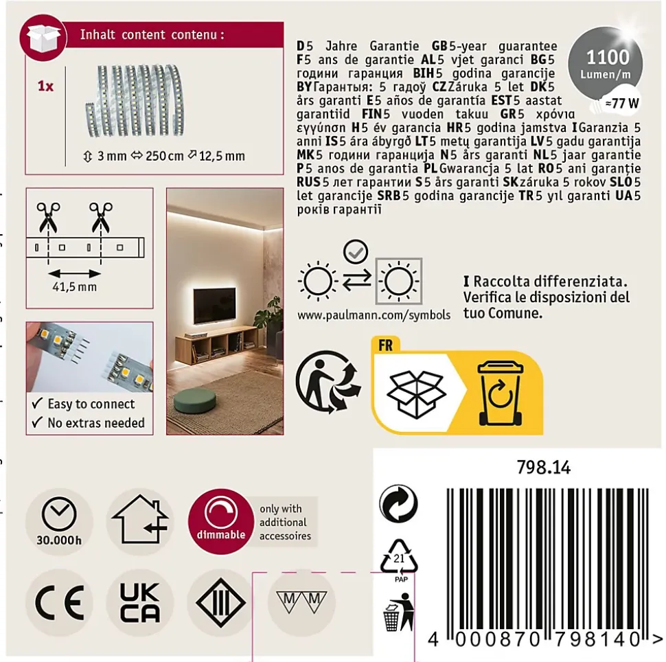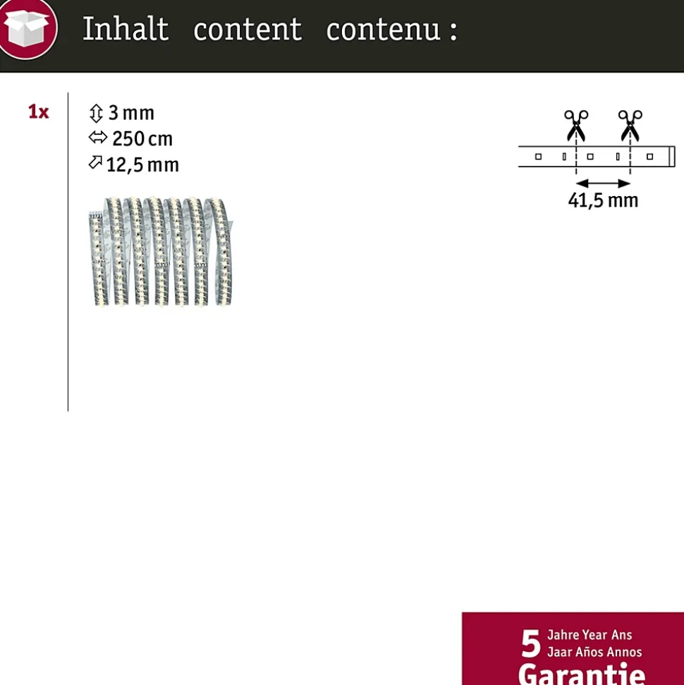 Rubans individuels|Pour extension des kits de base MaxLED|Peut être raccourci en fonction de la longueur souhaitée|Beschichtung schützt vor Spritzwasser und Staub|Farbtemperatur: 2700K – Warmweiß