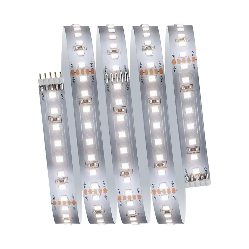 Kit complet avec Strip et alimentation|Strip LED à haute efficacité 40 % d’énergie en moins pour le même rendement lumineux|Température de couleur: 4000K – Blanc neutre|Peut être raccourci en fonction de la longueur souhaitée|Face arrière autocollante pour un montage simple|Gradable avec le contrôleur variateur/commutateur MaxLED|Aménagements personnalisés|Montage simple par système de connexion
