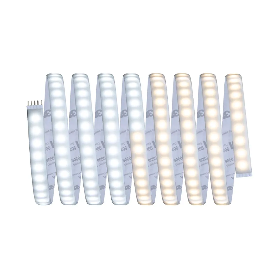 Tunable White offre un choix infini du blanc chaud au blanc lumière du jour|Kit complet avec ruban, alimentation et télécommande|Protection IP : IP44 – Protection contre les projections d’eau|Le revêtement protège contre l’aspersion et la poussière.|Face arrière autocollante pour un montage simple|Matériel flexible pour le montage sur des surfaces planes ou courbes|Température de couleur: 2700K Blanc chaud – 6500K – Lumière du jour|La technologie LED fait économiser jusqu’à 80 % d’énergie par rapport aux ampoules à incandescence classiques.|Inclus le connecteur à 5 broches pour une connexion simple au ruban|Peut être raccourci en fonction de la longueur souhaitée|Montage simple par système de connexion