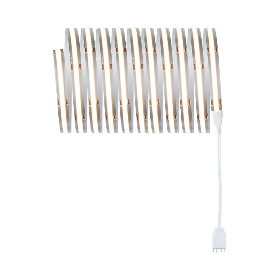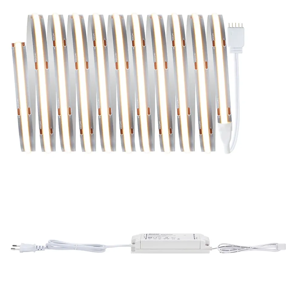 Les strips MaxLED 1000 Full-Line COB sont si puissants qu’ils peuvent être utilisés sans problème comme éclairage d’intérieur. Le kit de base MaxLED 1000 COB avec 528 LED/m produit un rayonnement absolument homogène sans points lumineux visibles. Le connecteur lumineux permet une connexion parfaite qui prolonge le visuel lumineux linéaire sans interruption visible. Le Strip de 10 mm est particulièrement étroit et se glisse donc facilement dans les profilés LED filigranes. L’angle de rayonnement large de 180° répartit la lumière à merveille sans ombre portée. Une couche continue de phosphore protège les LED de la poussière et de l’humidité, les points de contact ont l’IP20. La prolongation du kit de base blanc chaud est facile à l’aide d’un strip individuel adapté.