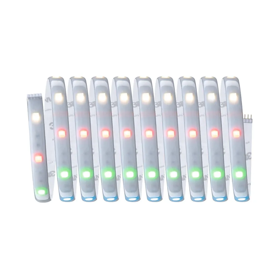 Les Strips MaxLED 250 d’une puissance de 15 watts produisent une lumière décorative agréable. Intégrant la fonction Zigbee 3.0, ils séduisent par leur fonctionnement intelligent. Grâce à la commande de couleur, vous pouvez créer une ambiance personnalisée, que ce soit un éclairage permanent unicolore ou des effets lumineux multicolores. Une diode blanche (W) assure de plus une confortable lumière blanc chaud et rend superflu le mélange d’un ton blanc avec les couleurs rouge, vert et bleu (RGB). Outre le ruban avec revêtement (Protect Cover) d’une longueur de 3 m, le kit de base contient un ballast adapté et un Controller Zigbee 3.0 qui permet une commande intelligente. Une télécommande ou une passerelle pour la commande intelligente ne sont pas comprises dans ce set de base. Zigbee 3.0 est un protocole de transmission radio qui met en réseau les appareils de différents fabricants. Le ballast contient une réserve de performance supplémentaire, ce qui permet le cas échéant de pouvoir le prolonger avec d’autres Strips. Les Strips MaxLED sont particulièrement impressionnants dans les profilés. Paulmann propose en outre une gamme fournie de profilés encastrés ou en saillie assortis aux Strips MaxLED.