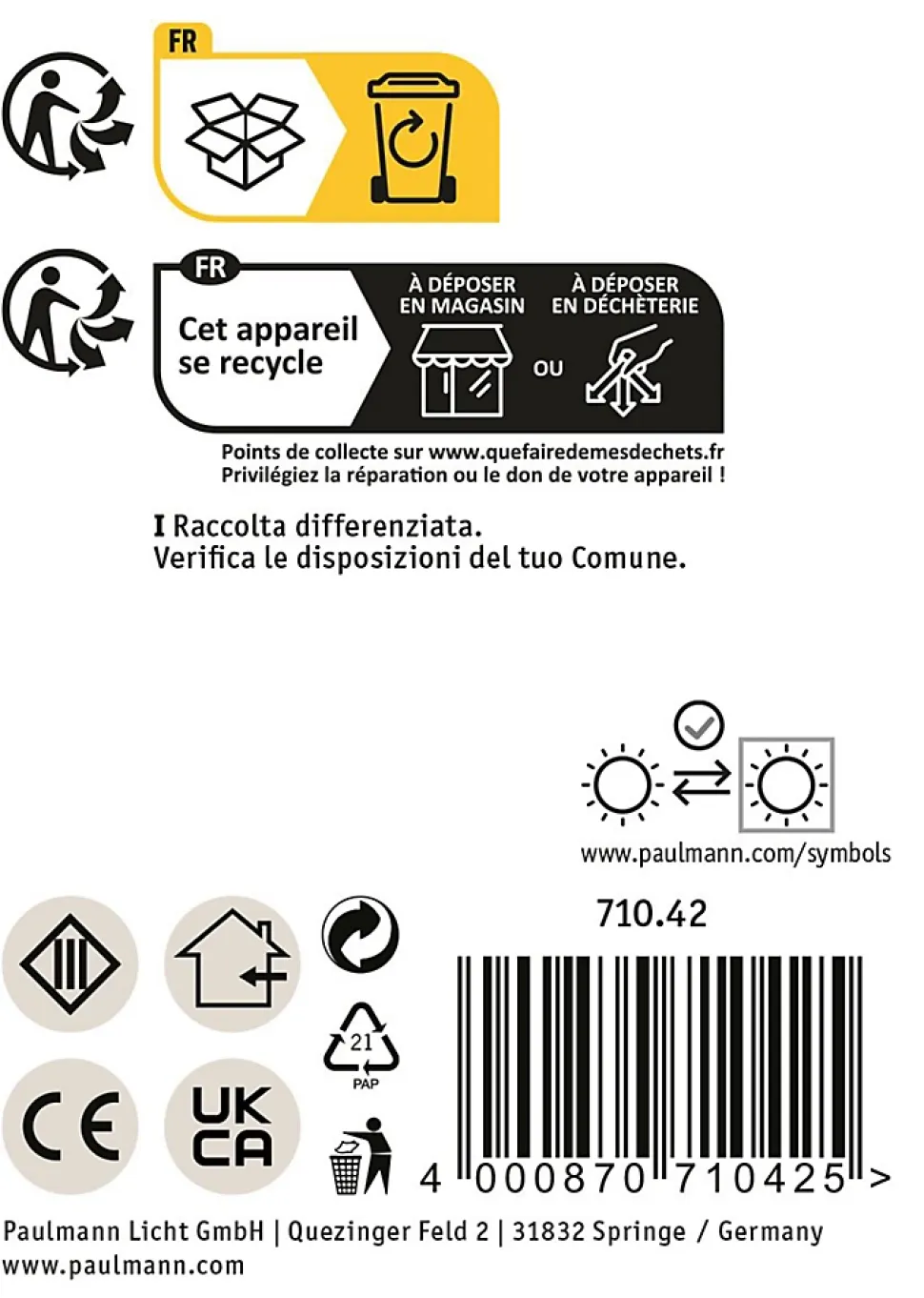 - Blanc chaud 2700 K pour une lumière douce et relaxante.