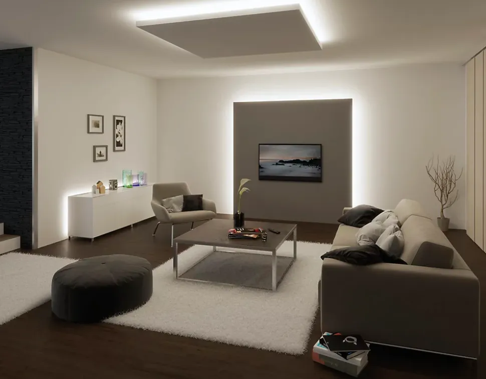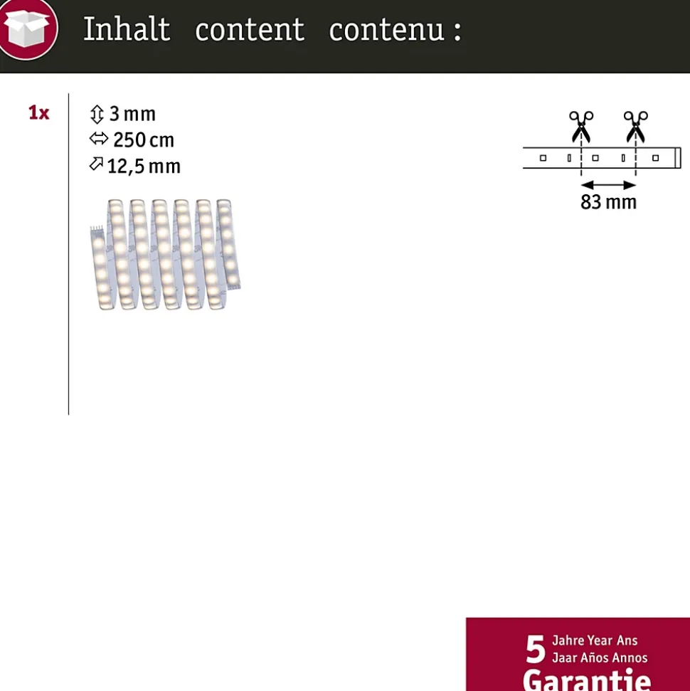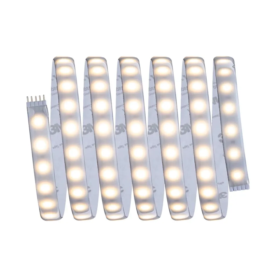 IP44 – Protection contre les projections d’eau, y compris en extérieur|Rubans individuels|Peut être raccourci en fonction de la longueur souhaitée|Face arrière autocollante pour un montage simple|Matériel flexible pour le montage sur des surfaces planes ou courbes|Montage simple par système de connexion