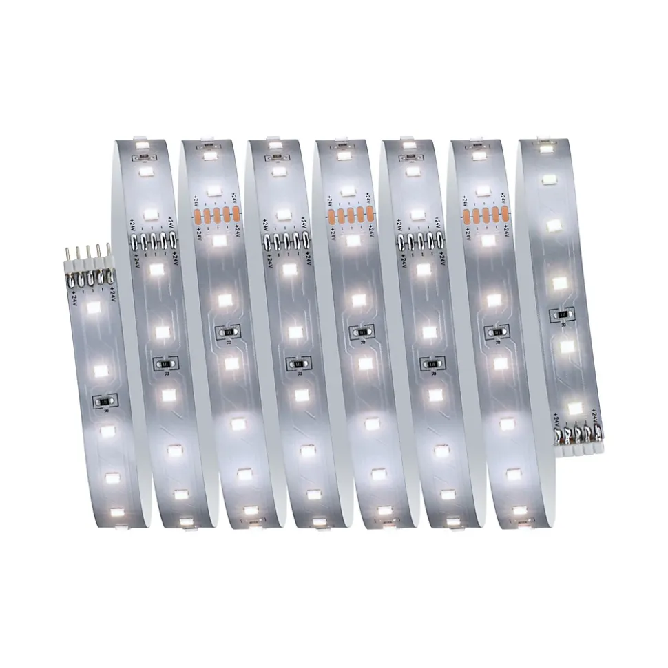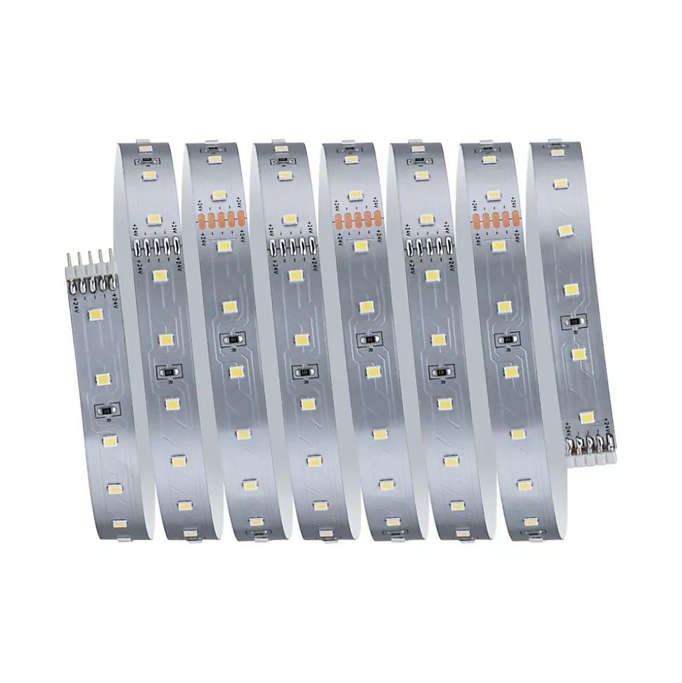Strip LED à haute efficacité 40 % d’énergie en moins pour le même rendement lumineux|Température de couleur: 4000K – Blanc neutre|Peut être raccourci en fonction de la longueur souhaitée|Face arrière autocollante pour un montage simple|Gradable avec le contrôleur variateur/commutateur MaxLED|Aménagements personnalisés|Montage simple par système de connexion