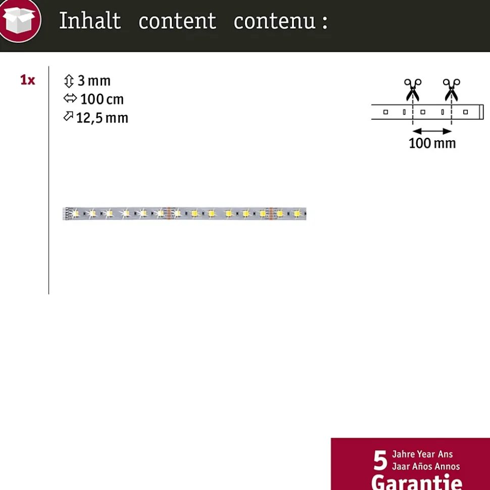 Les strips MaxLED sont si puissants qu’ils peuvent être utilisés sans problème comme éclairage d’intérieur. Ils sont particulièrement impressionnants dans les profilés. Grâce à la commande de la lumière blanche intelligente Tunable White, vous personnalisez la température de couleur des strips, du blanc lumière du jour de l’éclairage de travail au blanc chaud de la lumière de relaxation. Les strips individuels permettent d’étendre votre kit de base SmartHome. Veuillez prendre en compte à la conception la longueur maximale indiquée sur votre kit de base. Celle-ci ne peut pas être dépassée.