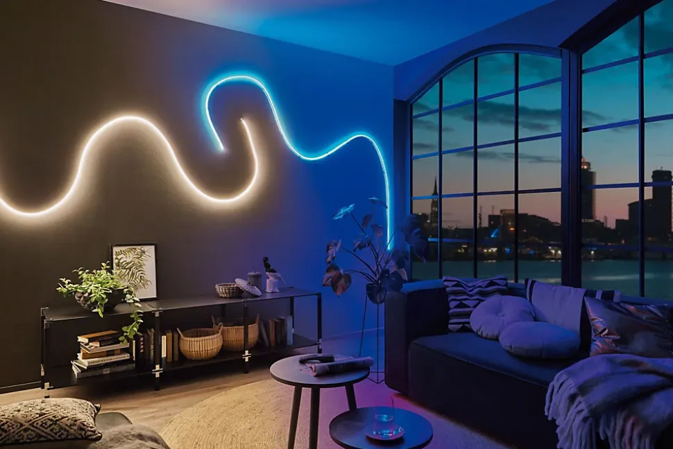 Subtil, homogène et puissant ! Avec sa puissance de 27 watts, MaxLED Flow RGB diffuse une lumière étendue sans points LED visibles. Il est enrobé d’un profilé flexible, possède un angle de rayonnement spectaculaire et peut être posé de manière rectiligne ou en épousant des courbes. Le set comprend des clips de montage transparents quasi invisibles, ainsi que des vis et des douilles de fixation. Doté de la protection IP67, ce Strip filigrane convient aux pièces humides et vient illuminer votre salle de bain Wellness.