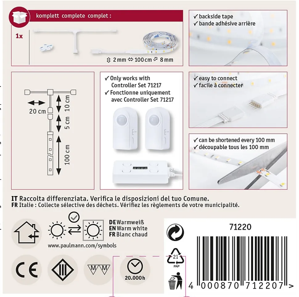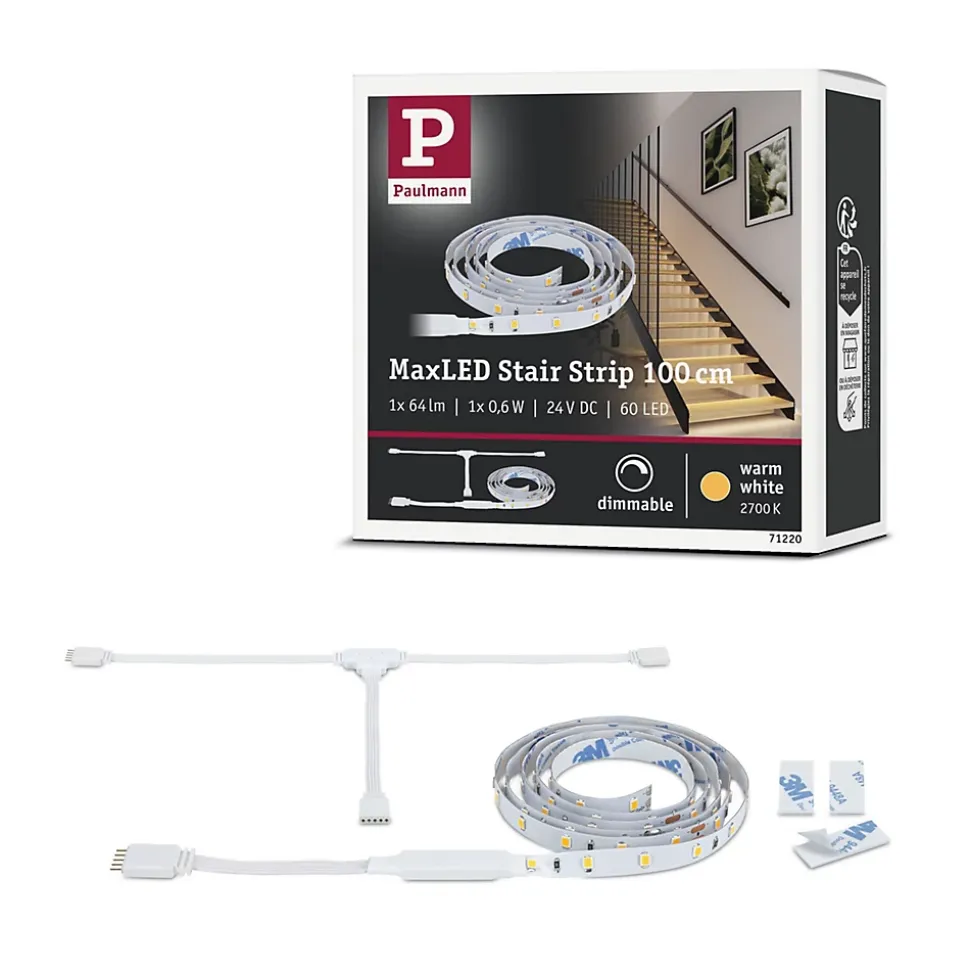 Kit d’extension comprenant un ruban LED (1 x 100 cm) et un distributeur|Extension pour le kit d’installation MaxLED Stair|System complet : extensible de 1 à 18 marches|Compatible avec les connecteurs MaxLED|Effet lumineux remarquable grâce à la fonction « LightWave »