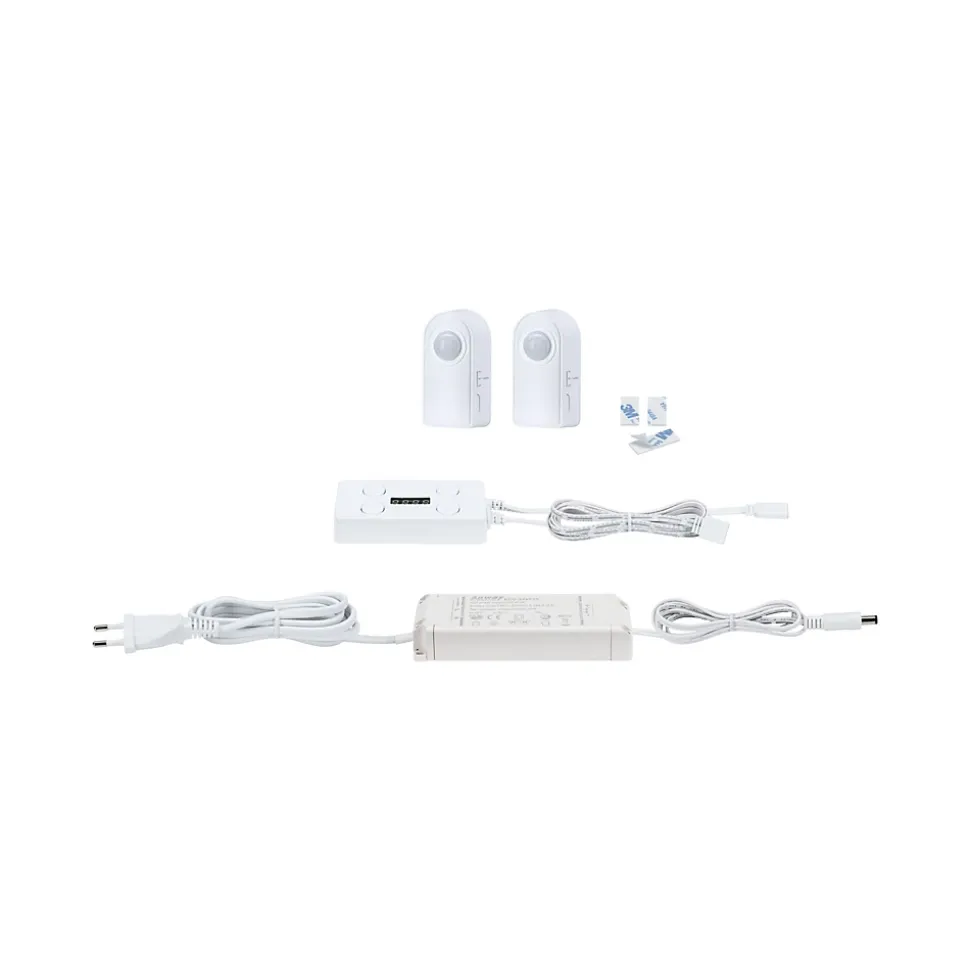 Kit d’installation comprenant un transformateur, un controleur et deux détecteurs de mouvement sans fil|Kit d’installation servant de base aux kits d’extension MaxLED Stair|Aucun câblage supplémentaire des détecteurs de mouvement grâce à la fonction sans fil|Sécurité élevée grâce à l’allumage et l’éteignage automatiques par détecteur de mouvement|System complet : extensible de 1 à 18 marches|Compatible avec les connecteurs MaxLED|Effet lumineux remarquable grâce à la fonction « LightWave »