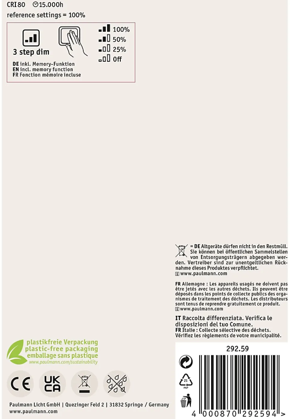 L’ampoule LED 180 lm Metallic Glow associe une lumière dorée discrète à une coupelle métallique décorative de couleur laiton. Grâce à la combinaison d’un filament maintenu en forme par un petit tube de verre torsadé et d’une fine structure grillagée, ces ampoules conviennent parfaitement aux suspensions, aux appliques ou aux lampes à poser avec douille E27. Le design intemporel rencontre ici la technologie LED efficace et assure un éclairage d’ambiance confortable et doré. Le commutateur mural permet de grader l’ampoule à 3 niveaux différents pour une facette supplémentaire de conception.