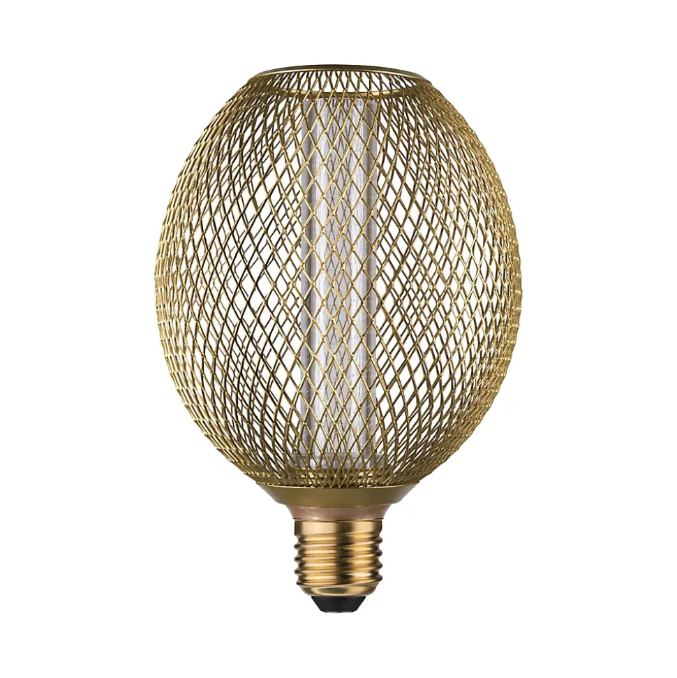 L’ampoule LED Metallic Glow associe une lumière dorée discrète à une coupelle métallique décorative de couleur laiton. Grâce à la combinaison d’un cylindre intérieur gravé au laser et d’une fine structure grillagée, ces ampoules conviennent parfaitement aux suspensions ou aux lampes à poser avec douille E27. L’élément lumineux situé à l’extrémité du cylindre intérieur diffuse une lumière parfaitement dirigée vers le bas. Le design intemporel rencontre ici la technologie LED efficace et assure un éclairage d’ambiance confortable et doré.