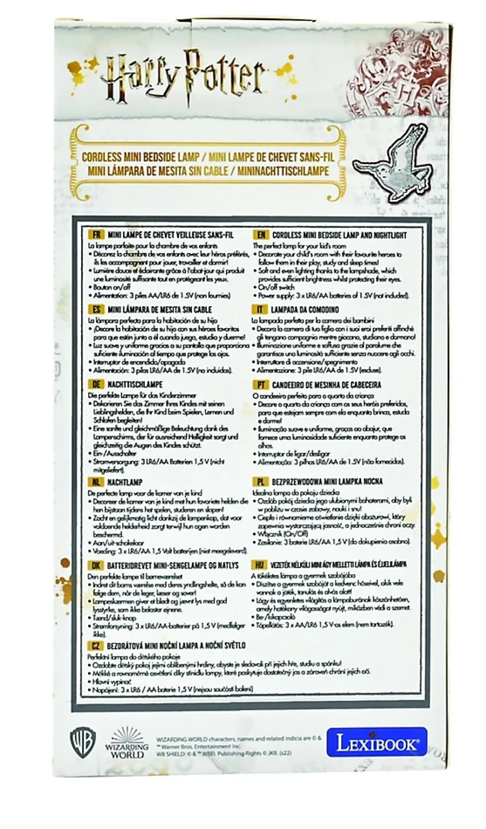 * Une petite lampe de chevet parfaite pour les enfants au design de Harry Potter.*Lumière LED pour profiter d’un éclairage économe en énergie.*Une lumière douce pour éclairer sans éblouir.*Dimensions : 9.8 x 9.7 x 18.6 cm. Une taille idéale pour les tables de chevets et étagères de vos enfants.*Pratique pour la transporter partout dans sa chambre pour lire, jouer et plus encore !*Alimentation : 3 piles AA/LR6 (non incluses). Pratique pour la transporter partout dans sa chambre pour lire, jouer et plus encore !