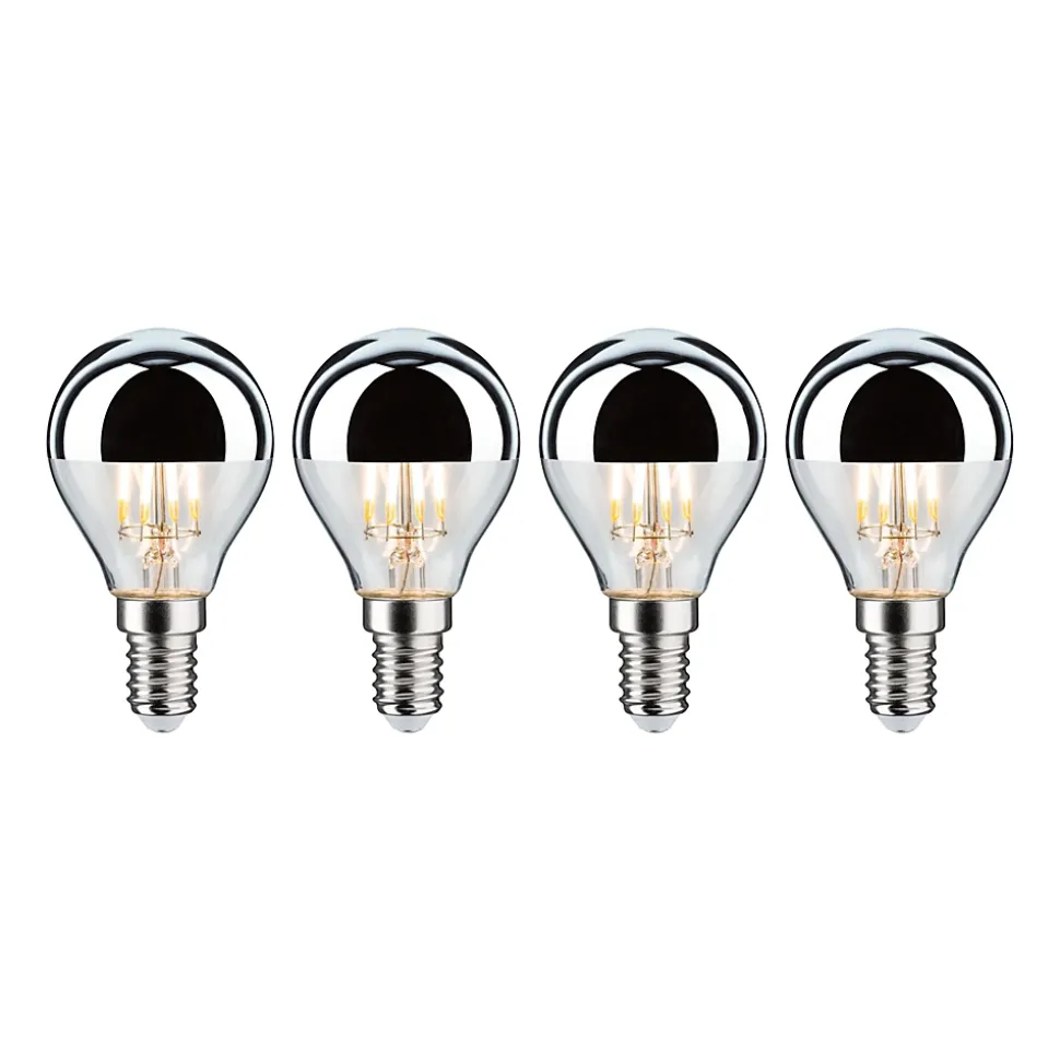 Le kit d’ampoules comprend 4 LED sphériques à calotte réflectrice de couleur argentée et gradables. Les ampoules cylindriques diffusent la lumière dans toutes les directions. Éclaire de façon uniforme même les plus grands abat-jour. Elles ont une température de couleur blanc chaud agréable.