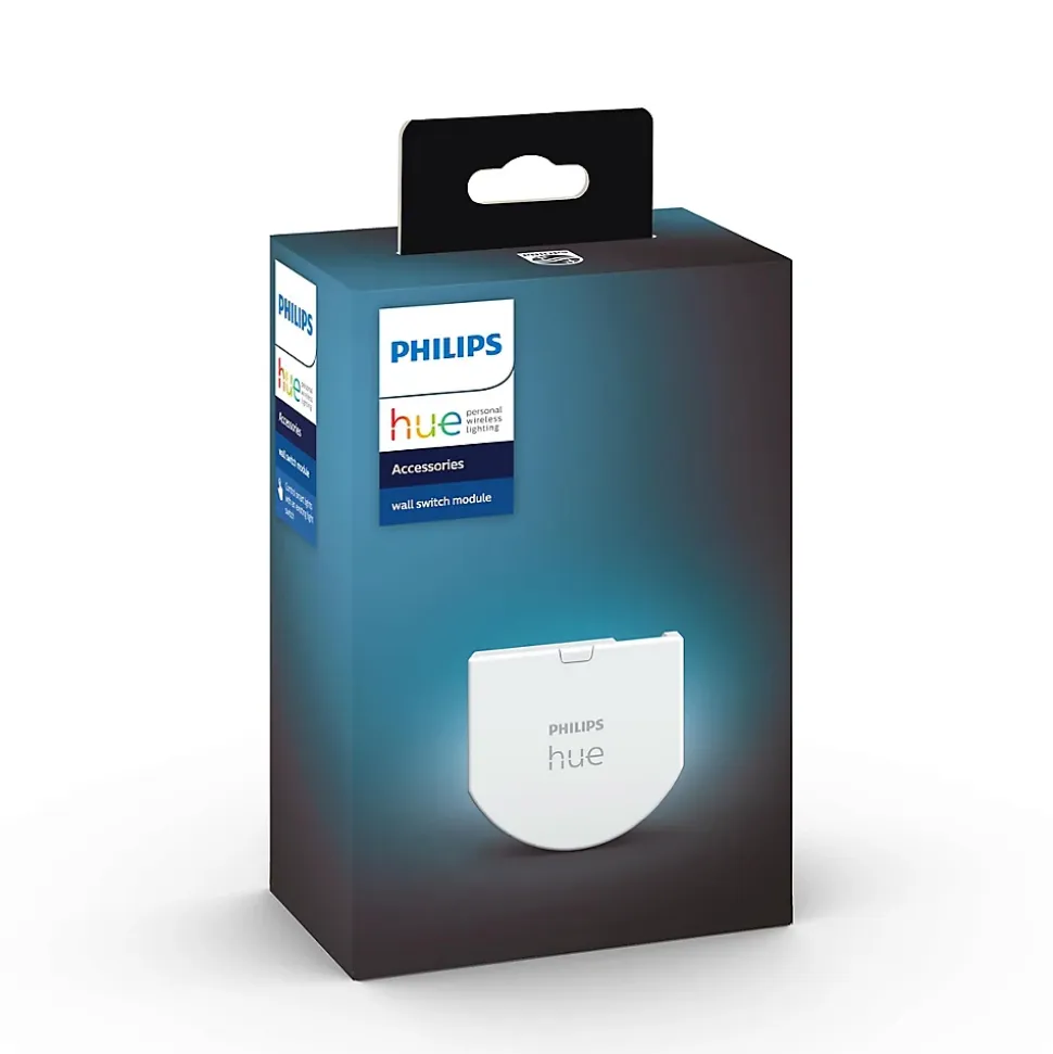 - Installé derrière les interrupteurs, le module d’interrupteur mural Philips Hue vous permet d’utiliser les interrupteurs existants avec vos éclairages connectés Philips Hue. Vos lumières restent toujours allumées et accessibles, et vous pouvez même utiliser l’interrupteur afin de configurer différentes scènes sur une lumière individuelle, dans une pièce ou dans une zone.