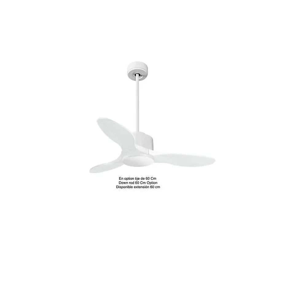 Modulo RegularModulo_DC4_P5Wi106Le Modulo est un ventilateur de plafond modulable et un destratificateur d’air, idéal pour ventiler en été et homogénéiser la chaleur en hiver. Ce régulateur thermique vous aide à réduire vos dépenses énergétiques en chauffage et climatisation.Caractéristiques du MoteurÉquipé d’un moteur à courant continu (DC) avec roulements à billes auto-lubrifiés, le Modulo offre un contrôle précis de la vitesse, une efficacité énergétique remarquable, un fonctionnement silencieux et une longue durée de vie avec peu d’entretien. Le moteur DC garantit une faible consommation d’énergie et un fonctionnement Hyper Silence, pratiquement inaudible jusqu’à la vitesse 3.Installation et OptionsLe Modulo est livré avec deux tiges de plafond de 12,5 cm et 25 cm, avec des options supplémentaires de tiges de 60, 120 et 180 cm. Les pales sont disponibles en ABS léger et résistant ou en bois, et vous pouvez choisir d’installer 2 ou 3 pales selon vos préférences.Performance et UtilisationLe modèle P5 est adapté pour des pièces de 15 à 20 m² en été et de 40 à 60 m² en hiver. Avec un diamètre de 106 cm, il offre une puissance de 2450-7240 m³/h, une vitesse de rotation de 85-245 RPM, un niveau sonore de 28-45 dB et une consommation de 3-13 Watts.Fonctionnalités AvancéesChaque ventilateur Modulo est fourni avec une télécommande et un récepteur FullFlow, permettant de contrôler les vitesses, l’éclairage, la minuterie, le thermostat, le Wi-Fi et le sens de rotation des pales. Le thermostat ajust